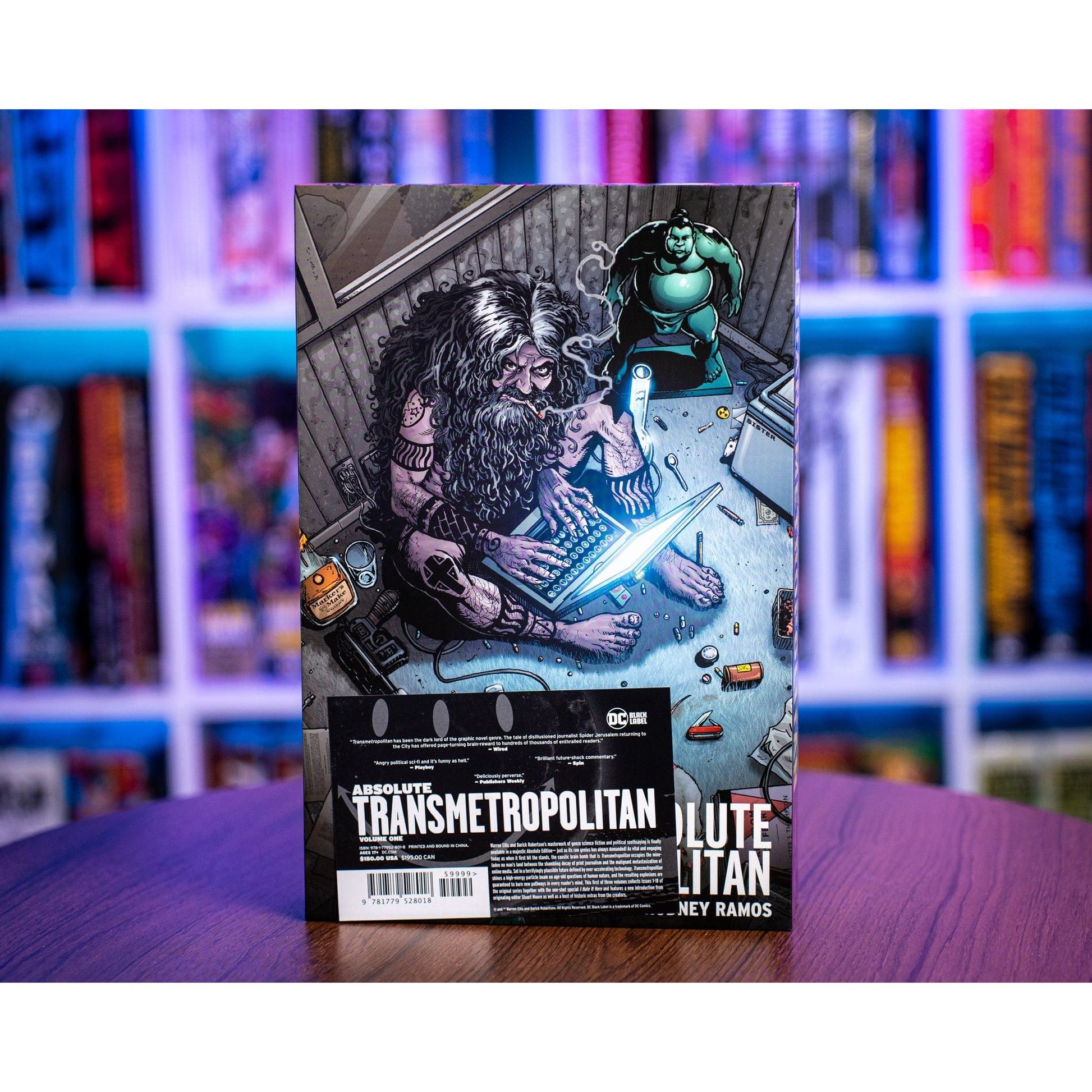 As vital and engaging today as when it first hit the stands, the caustic brain bomb that is Transmetropolitan occupies the mine-laden no man’s land between the shambling decay of print journalism and the malignant metastasizing of online media. Set in a terrifyingly plausible future defined by ever-accelerating technology, Transmetropolitan shines a high-energy particle beam on age-old questions of human nature, and the resulting explosions are guaranteed to burn new pathways in every reader’s mind.