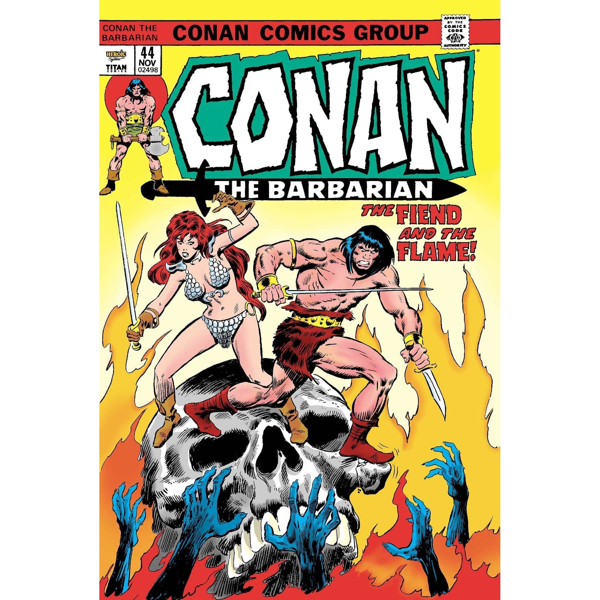 The legend of Conan continues! Tired of the thieving life, Conan signs on as a mercenary for the warring kingdom of Turan. The enemy will tell of Conan’s legendary skill in battle — if any of them live to tell the tale — but palace intrigue may prove more dangerous to the barbarian. After all, it’s never wise to bed a wizard’s woman. Then, Conan joins with Red Sonja for a multipart adventure. Last, but far from least, we present Roy Thomas and Gil Kane’s complete adaptation of “The Hour of the Dragon,” the iconic story of how Conan became king and conqueror and met the woman who would become his wife.