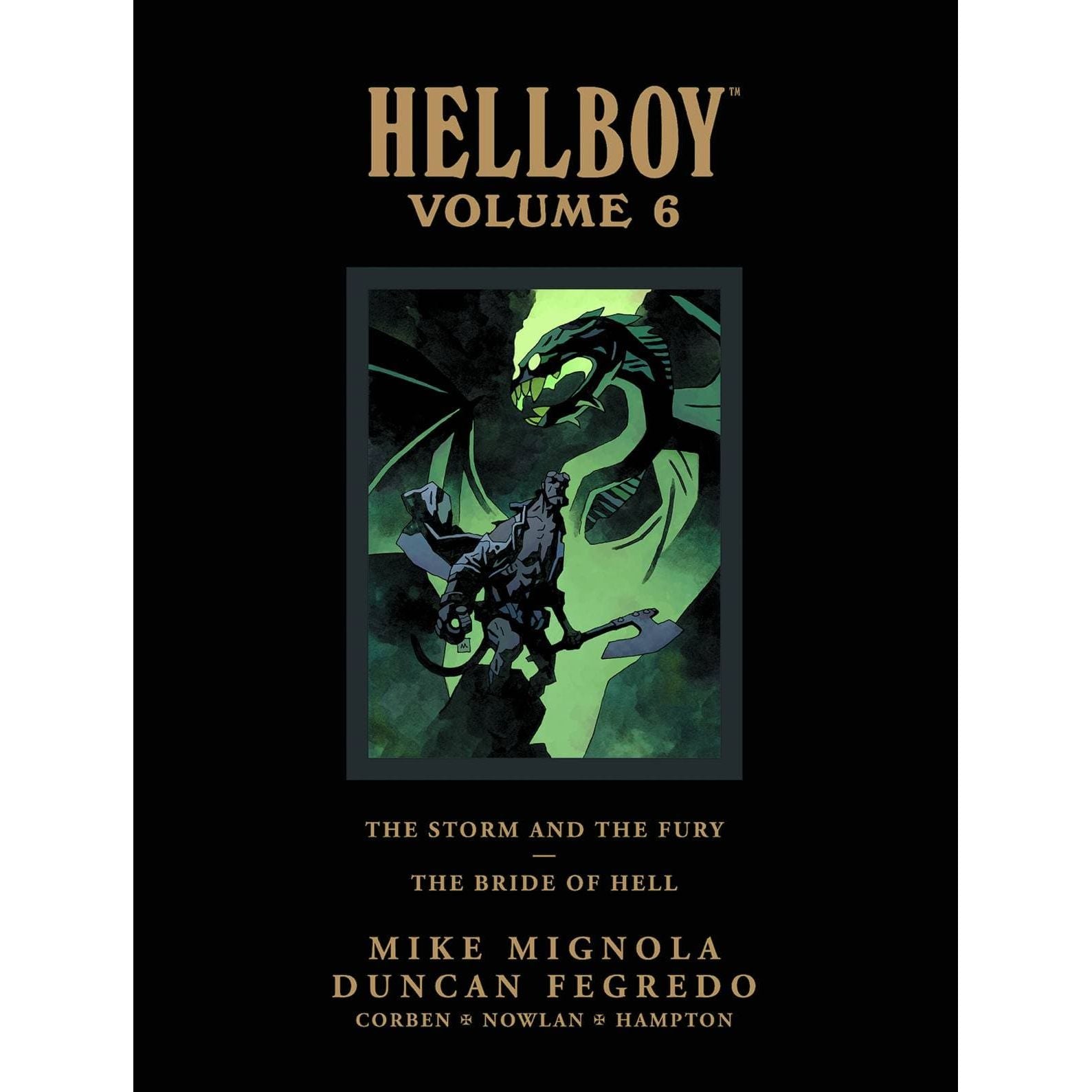 The oversized Hellboy hardcover series continues, collecting the climactic death of Hellboy storyline from Mike Mignola and Duncan Fegredo, and one-shots by some of the greatest talents in comics! Hellboy Library Volume 6 collects two complete trade-paperbacks: The Storm and the Fury and The Bride of Hell and Others, as well as an extensive selection of previously unreleased art.
