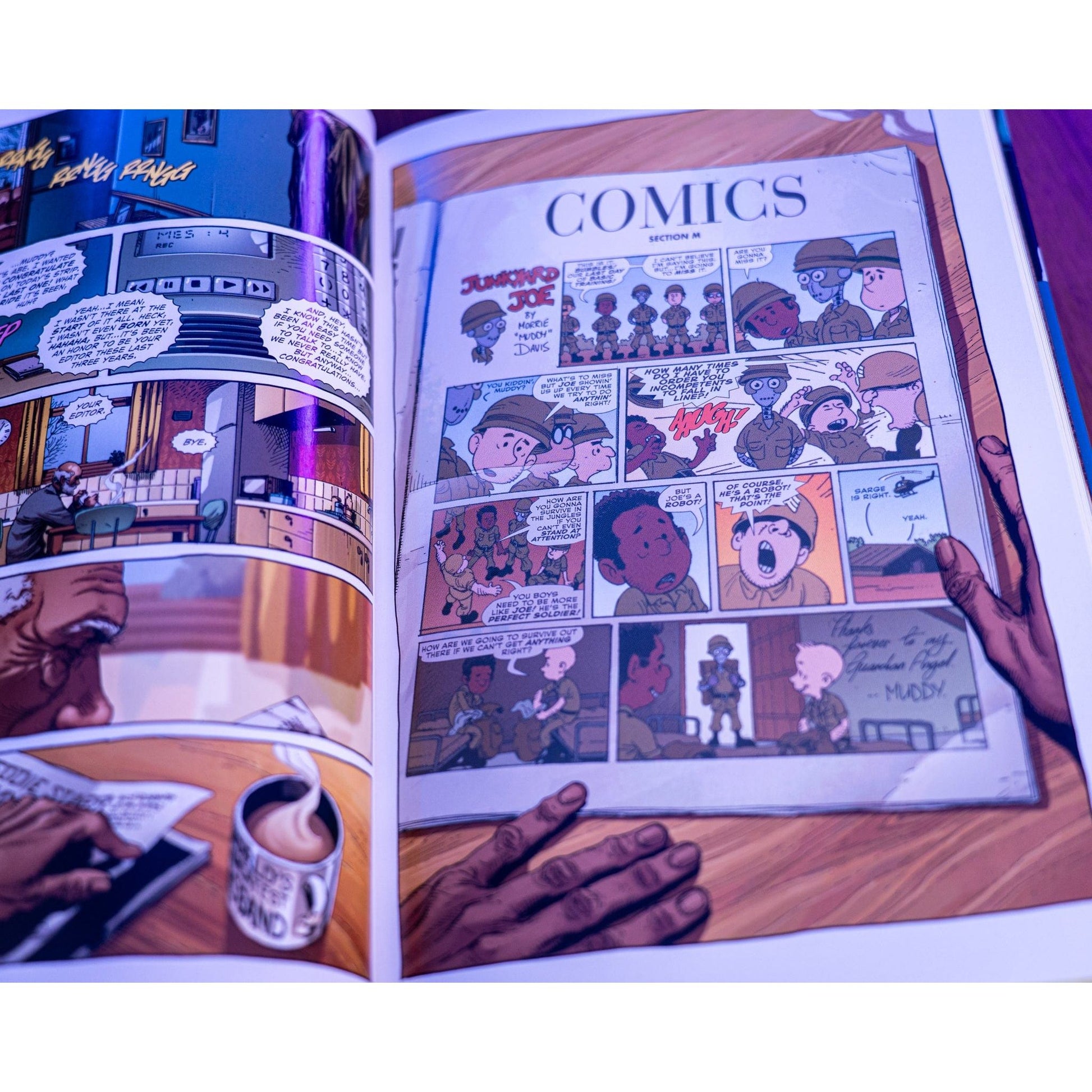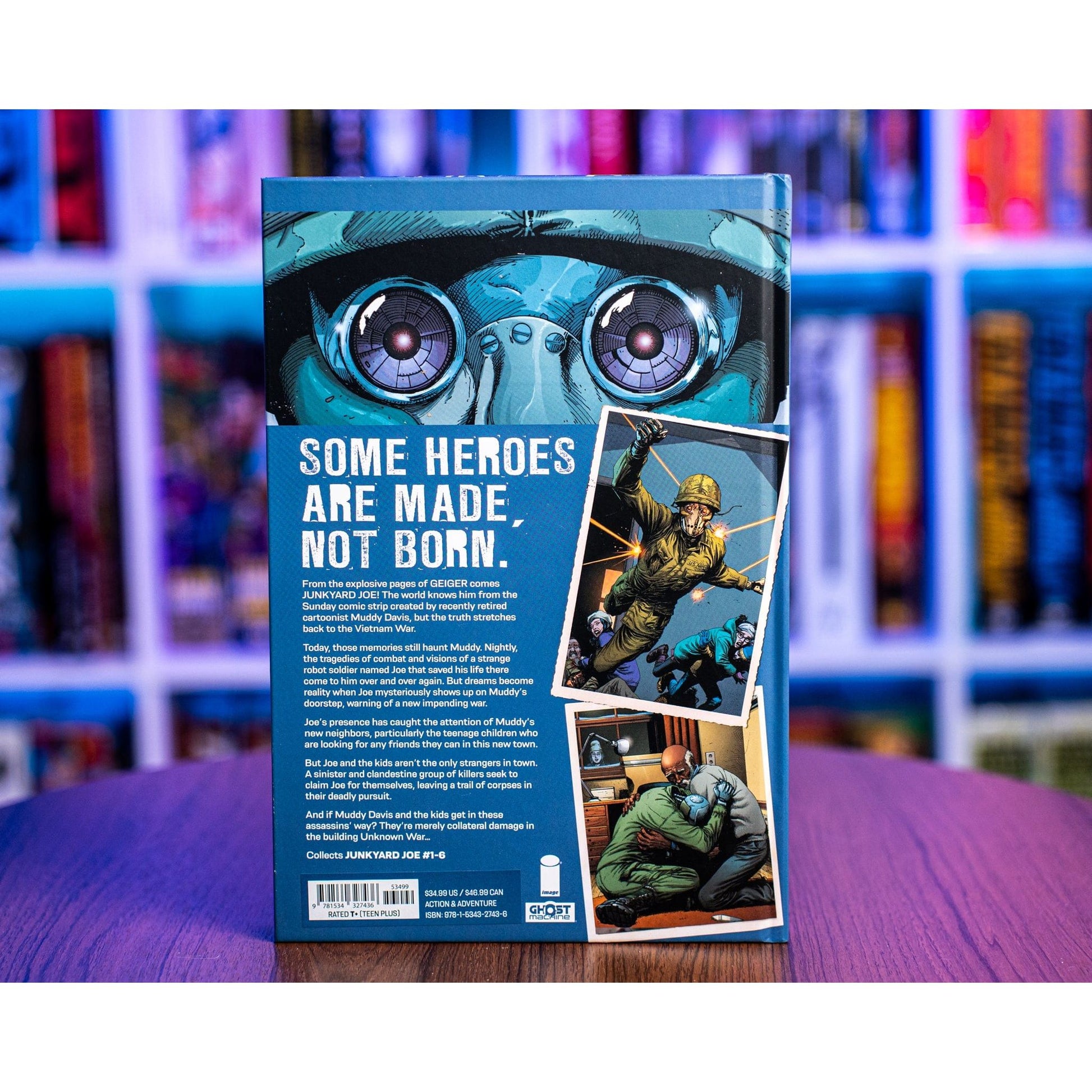 From the explosive pages of GEIGER comes JUNKYARD JOE! The world knows him from the comic strip by recently retired cartoonist Muddy Davis, but the truth stretches back to the Vietnam War. The tragedies of combat and visions of a strange robot soldier that saved Muddy’s life there still haunt him. But dreams become reality when Joe mysteriously shows up on Muddy’s doorstep, warning of a new impending war.