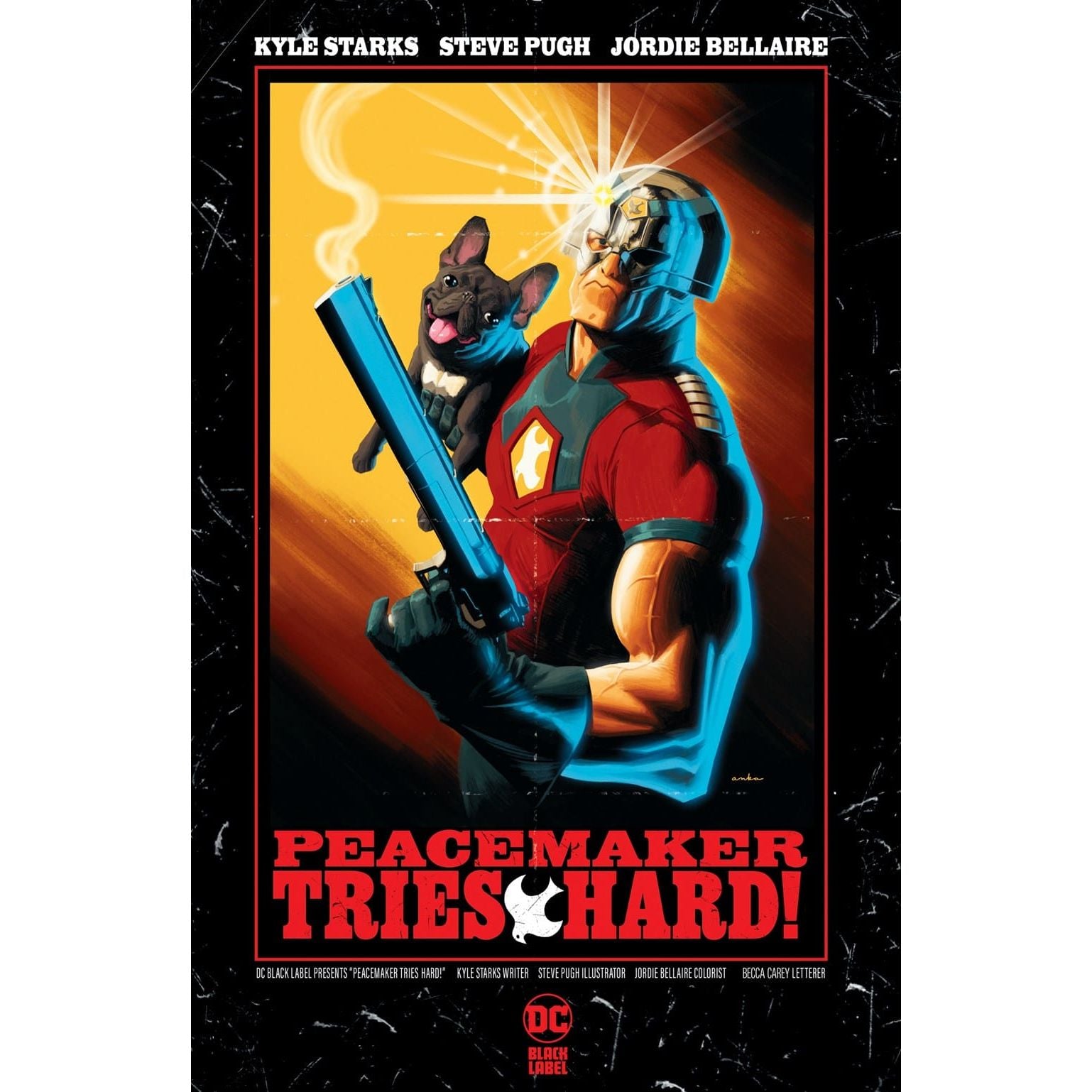 Christopher Smith isn’t very good at being a superhero, but Peacemaker tries hard! An “extremely ages 17+” book from writer Kyle Starks and artist Steve Pugh puts Peacemaker on a quest to save his beloved dog from a super-villain who has some nefarious plans for Christopher Smith’s skill set.